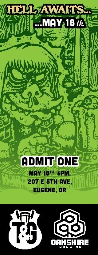 Ticket for Oakshire Brewing event at Tap & Growler. 1 of 2.